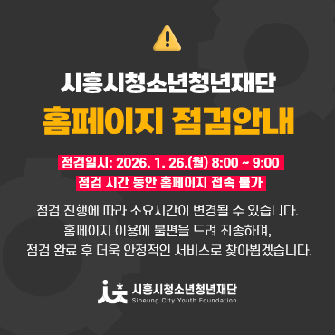 - [안내] 시흥시청소년재단 홈페이지 시스템 점검 안내 2025.08.20