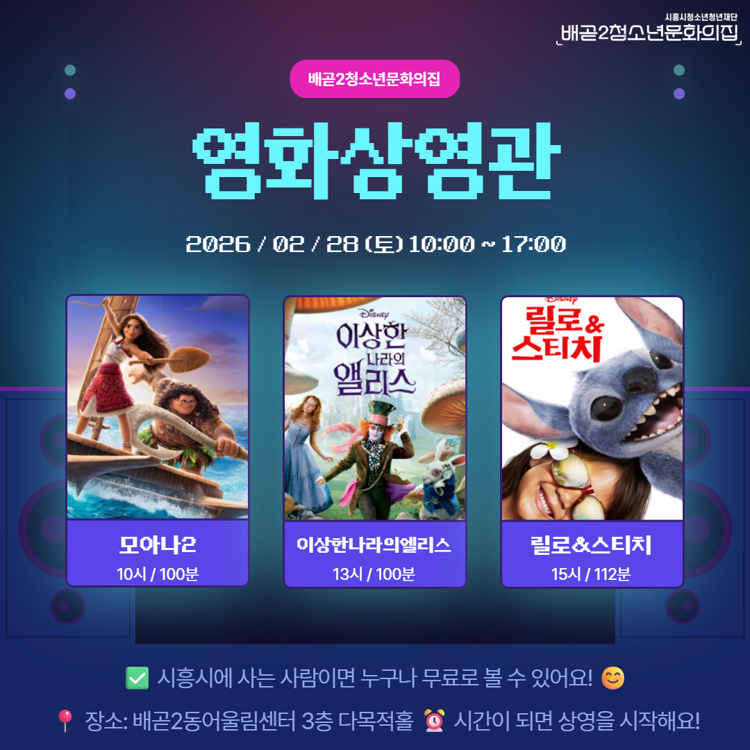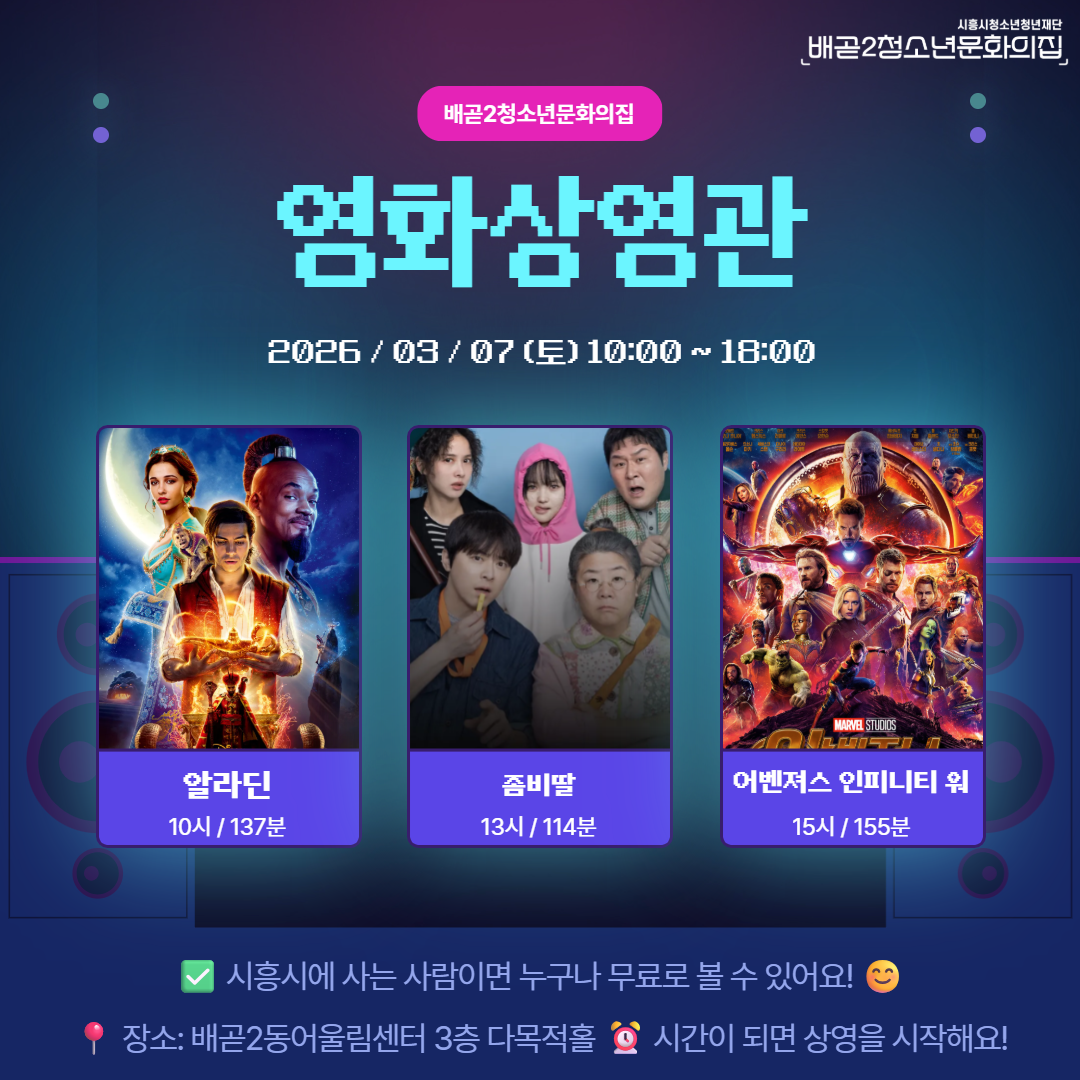 이번 주말, 영화관 대신 배곧2청소년문화의집 어때요? 😉