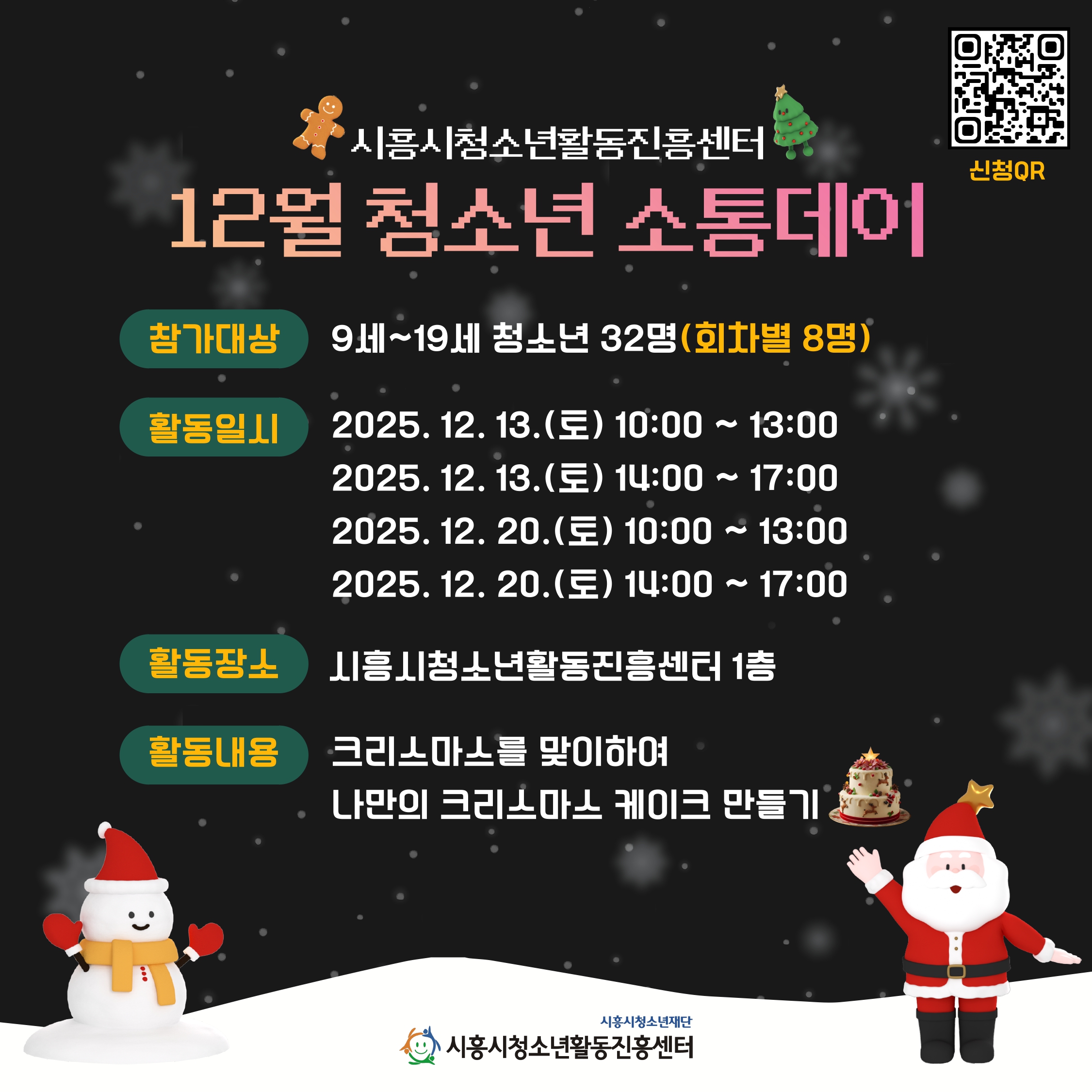 시흥시청소년활동진흥센터 "12월 청소년 소통데이" 참가자 모집