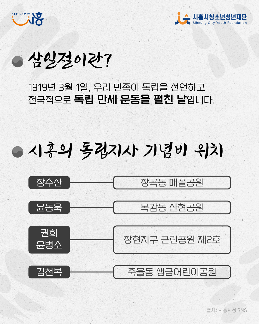 삼일절을 맞이하여 오는 3월 1일(일)은