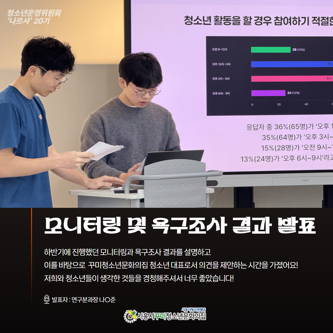 ✔️ 이용 청소년 대상 욕구조사