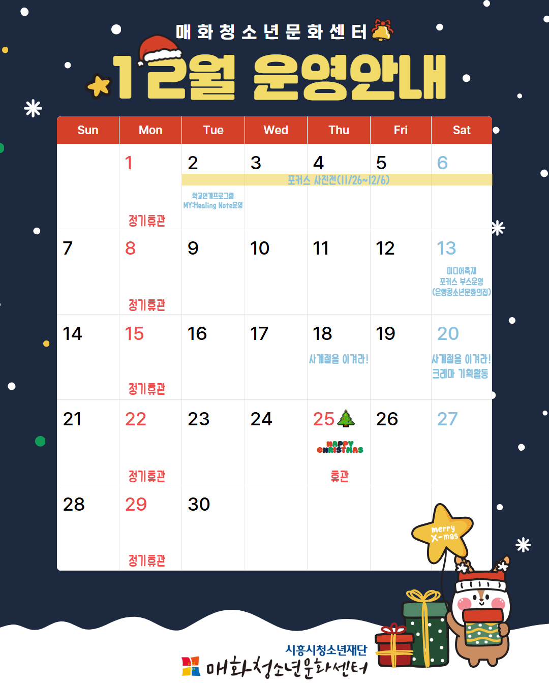 [안내]매화청소년문화센터 12월 운영안내