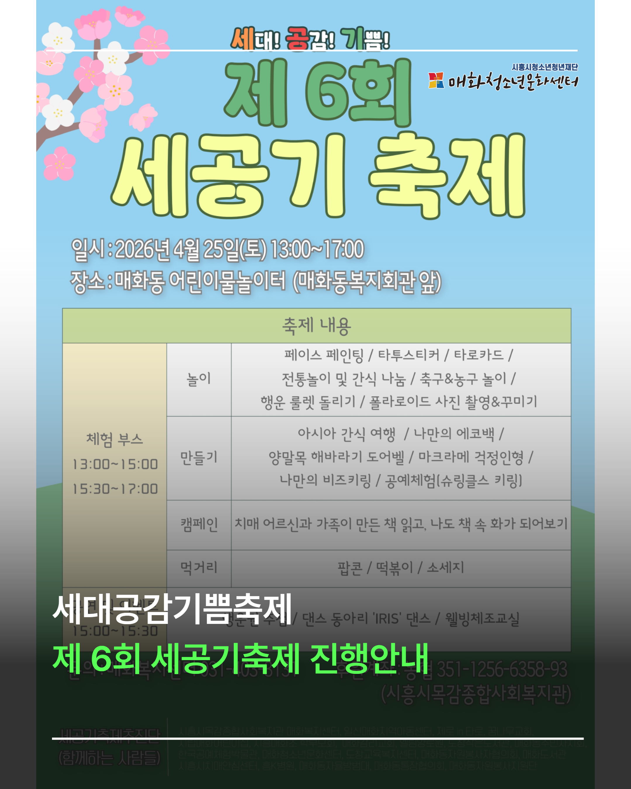 제 6회 세대공감기쁨축제(세공기축제) 안내2026.04.23