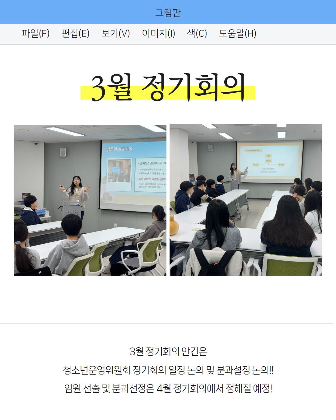 - 청소년운영위원회 정기회의 및 분과설정 논의하기