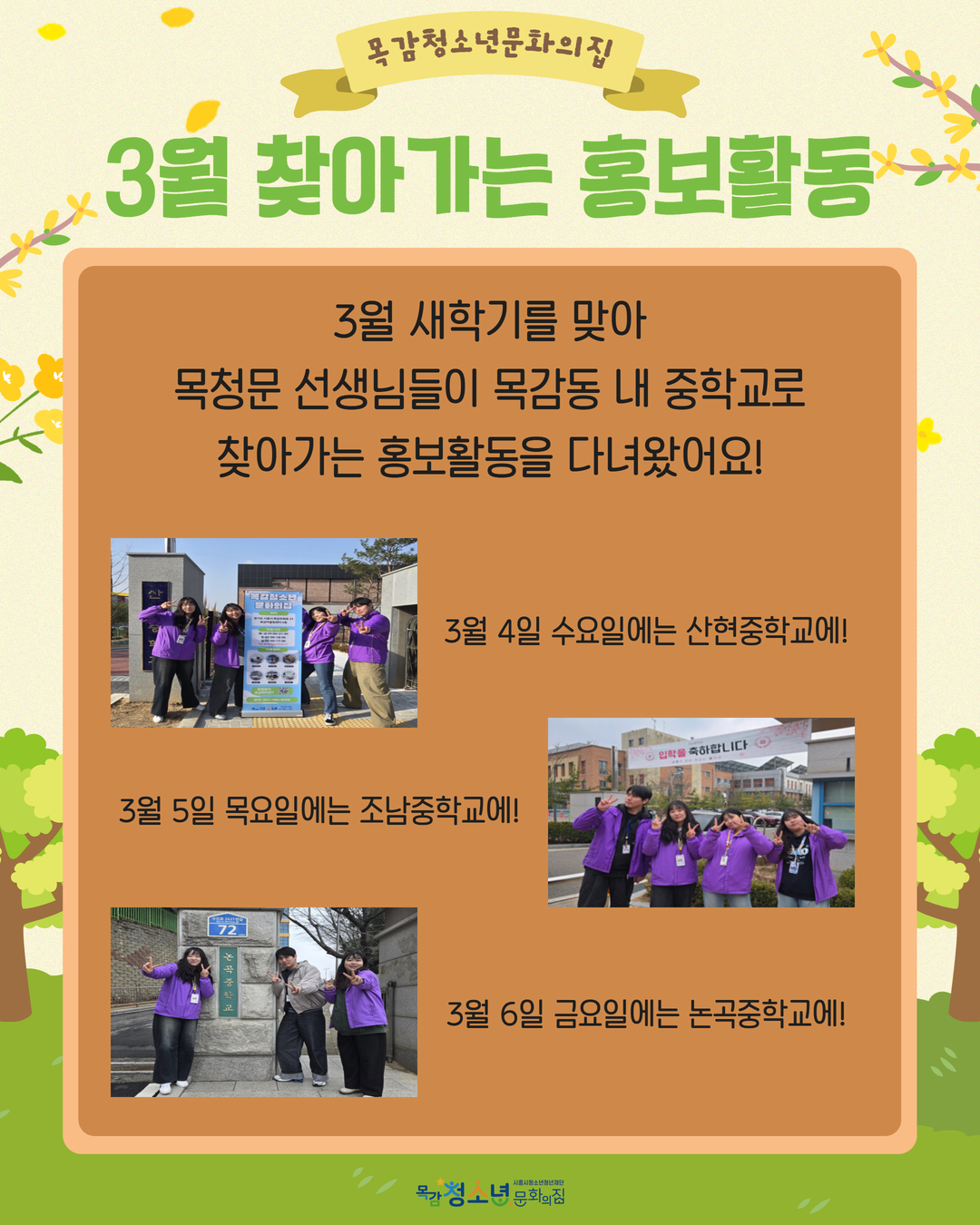 NEWS 공지사항 행사안내 보도자료 공지사항 📷사진동아리 '빛결' 모집📷 2026.03.03 목감청소년문화의집 2026년 3월 운영일정 안내 2026.02.28 삼일절 휴관안내 2026.02.25 🌈청소년자율공간기획단 '목공풀' 신규단원모집🌈 2026.02.21 공지사항 더보기 행사안내 📖목청문 스터디룸 운영 안내📖 2025.11.18 "두드림"과 함께하는 스마트폰 교실 📳 ! 2025.11.15 📍도장을 목(으)자!📍 2025.11.13 🎮보드게임 토너먼트 대회 참가자 모집🎮 2025.11.07 행사안내 더보기 보도자료 목감청소년문화의집, 청소년이 만든 거리공연 '감감버스킹' 성황리 마무리 2025.11.12 시흥시 목감청소년문화의집 ‘감감 버스킹’ 성료 2024.08.29 시흥시. '제32회 시흥시청소년종합예술제' 성료 2024.06.11 시흥시, '제32회 시흥시청소년종합예술제' 참가청소년모집 2024.05.07 보도자료 더보기