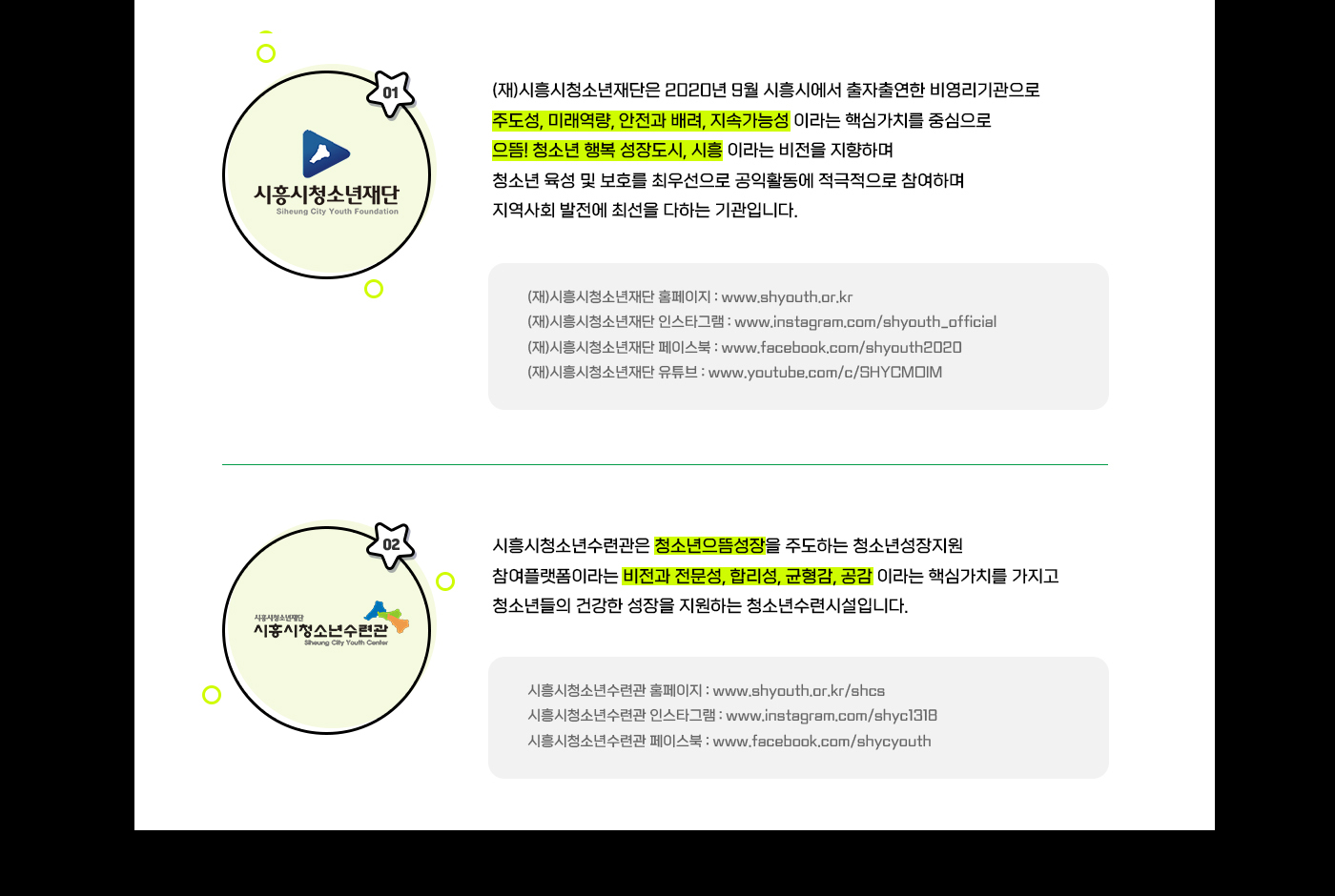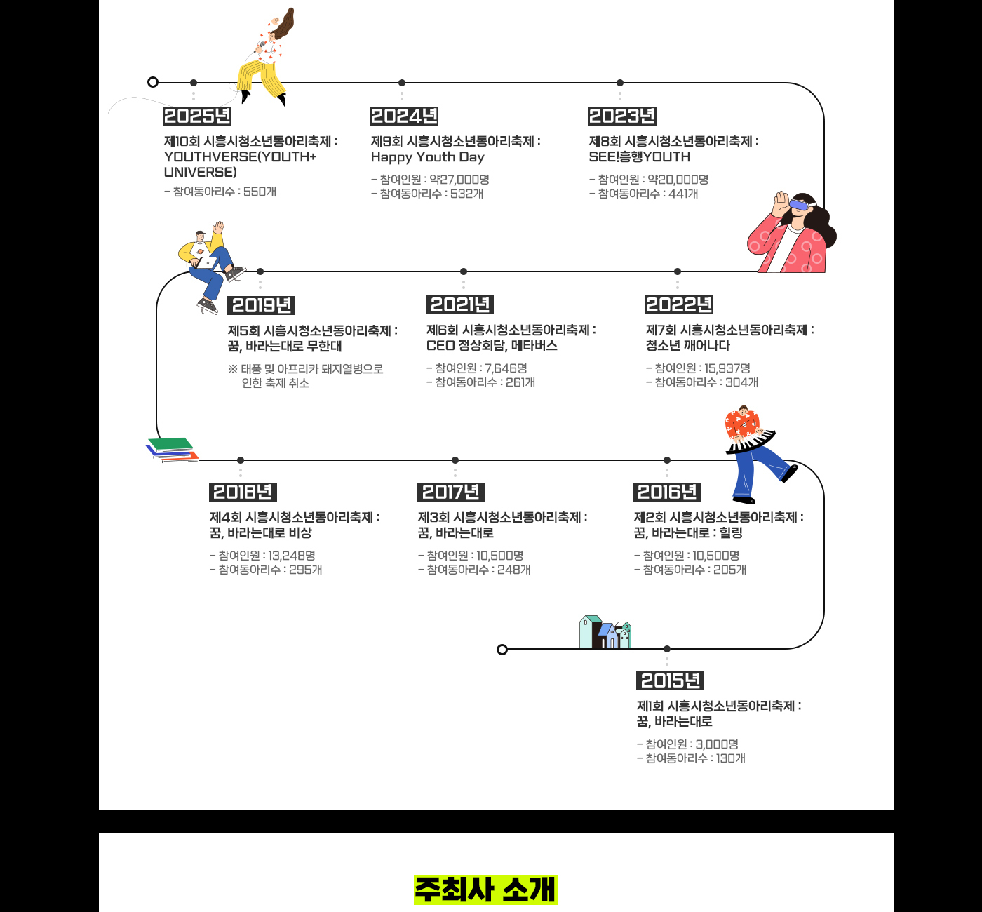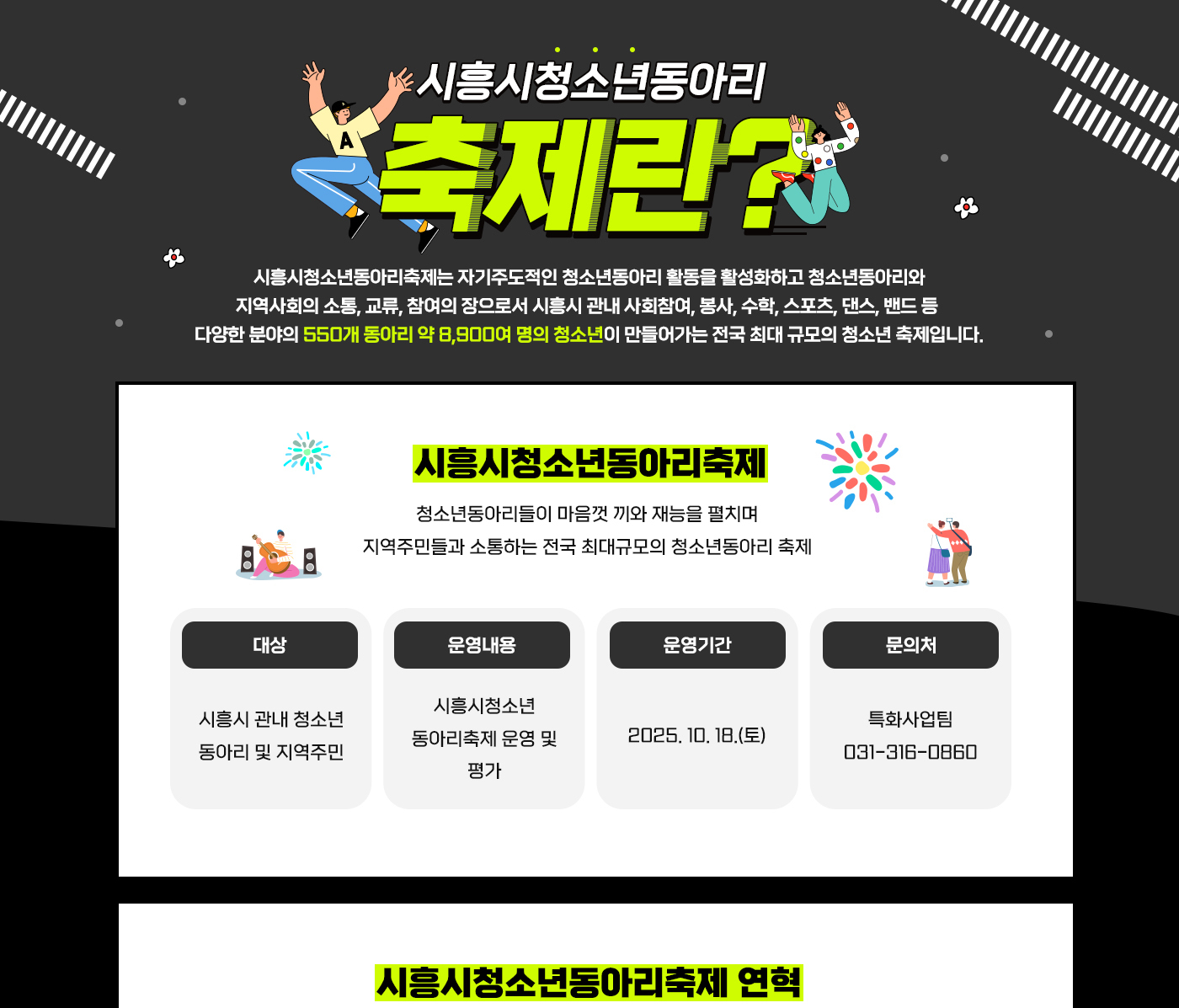 사이트 전체메뉴 알림마당 필독공지 청소년동아리란? 활동가이드 청소년행사 유튜브:흥텐HeungTen 동아리지원사업 지원사업 소개 지출가이드 활동일지 등록 지출 등록 및 현황 시흥시청소년동아리축제 동아리축제 소개 아카이브 찾아오시는 길 청소년동아리축제 신청 참가신청 현황 마이페이지 동아리 가입 동아리 조회 동아리 승인·관리 지원사업 신청 현황 지원금 카드 신청 현황 활동일지 현황 청년축제 참가신청 현황