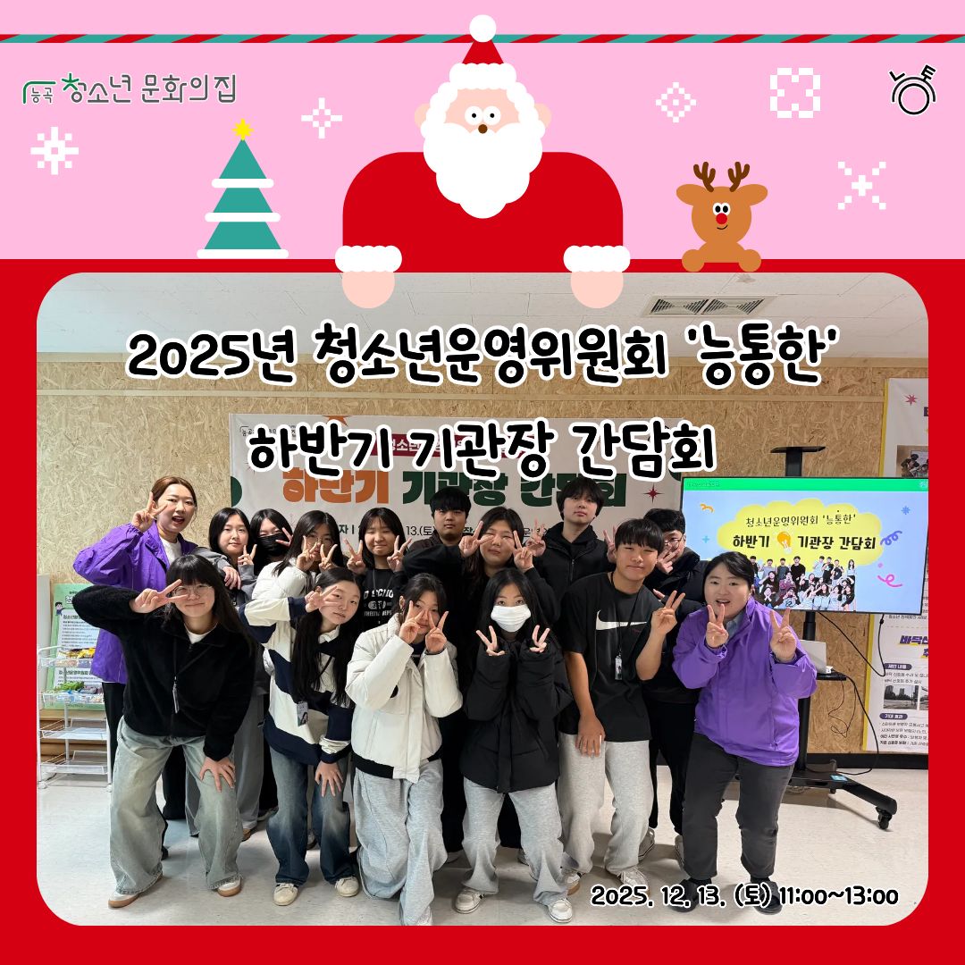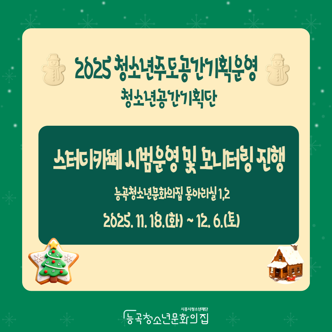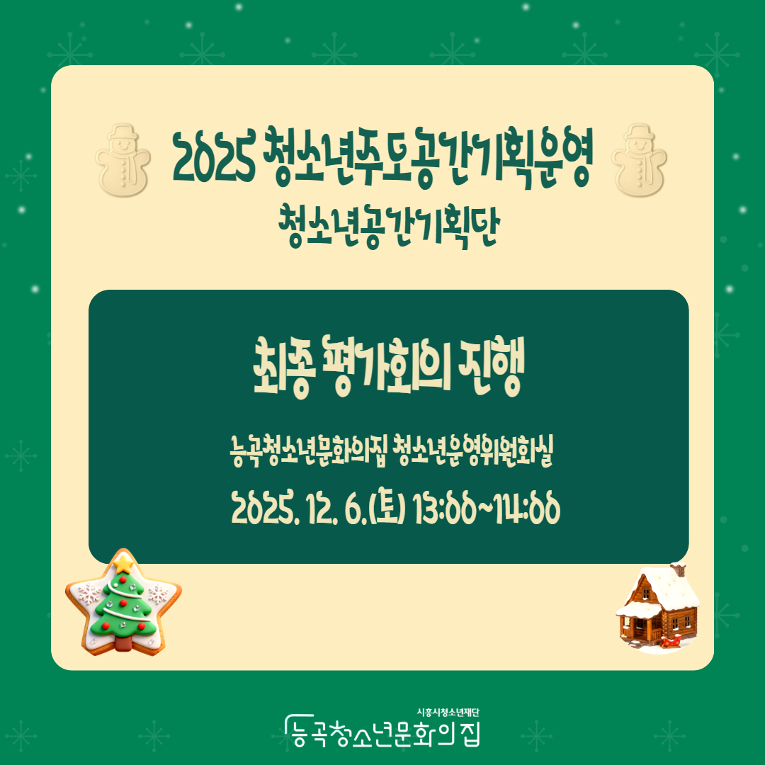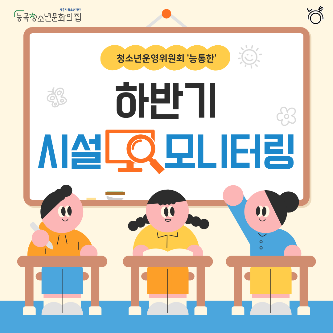 사이트 전체메뉴 시설소개 인사말 기관연혁 비전 및 미션 함께하는 사람들 시설이용안내 영상정보처리기기 오시는 길 청소년참여자치활동 청소년 참여자치기구 연합지원사업 청소년운영위원회 ‘능통한’ 청소년동아리연합회 ‘아로하’ 후기청소년서포터즈 ‘로망’ 기관특성화동아리 청소년활동프로그램 후기 청소년 체험형 인턴십 프로그램 SDGs청소년사회참여프로젝트 능곡미디어스튜디오 능곡베이킹스튜디오 사회참여환경프로그램 청소년AR실내운동회·플랫폼 청소년바리스타활동 청소년자율이용공간 청소년주도공간기획운영 청소년참여역량강화활동 지역사회연계협력활동 신청&대관 통합예약접수 바로가기 흥스(대관시설) 바로가기 알림마당 공지사항 채용정보 행사안내 활동소식 보도자료 자유게시판