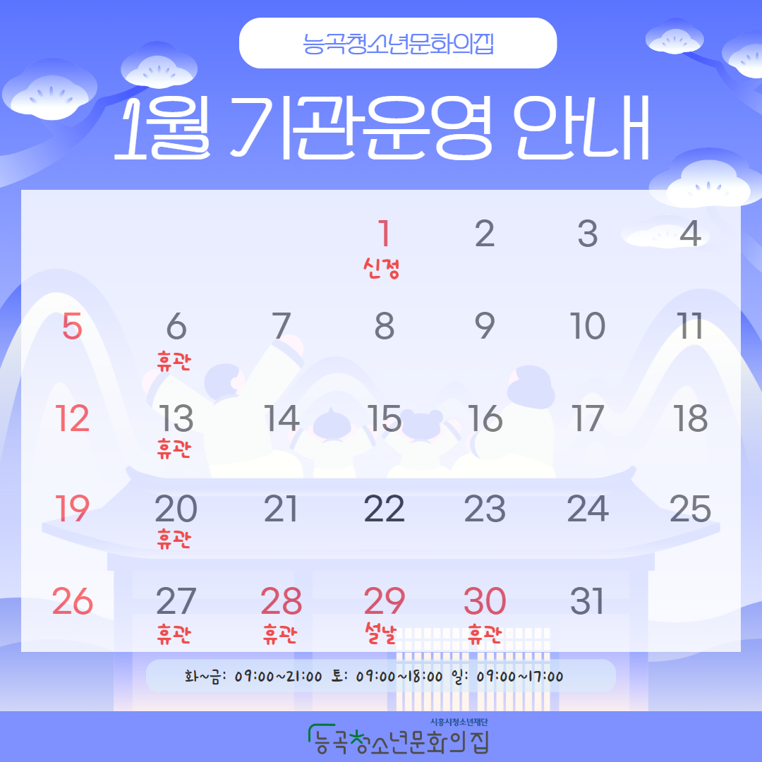사이트 전체메뉴 시설소개 인사말 기관연혁 비전 및 미션 함께하는 사람들 시설이용안내 영상정보처리기기 오시는 길 청소년참여자치활동 청소년 참여자치기구 연합지원사업 청소년운영위원회 ‘능통한’ 청소년동아리연합회 ‘아로하’ 후기청소년서포터즈 ‘로망’ 기관특성화동아리 청소년활동프로그램 후기 청소년 체험형 인턴십 프로그램 SDGs청소년사회참여프로젝트 능곡미디어스튜디오 능곡베이킹스튜디오 사회참여환경프로그램 청소년AR실내운동회·플랫폼 청소년바리스타활동 청소년자율이용공간 청소년주도공간기획운영 청소년참여역량강화활동 지역사회연계협력활동 신청&대관 통합예약접수 바로가기 흥스(대관시설) 바로가기 알림마당 공지사항 채용정보 행사안내 활동소식 보도자료 자유게시판
