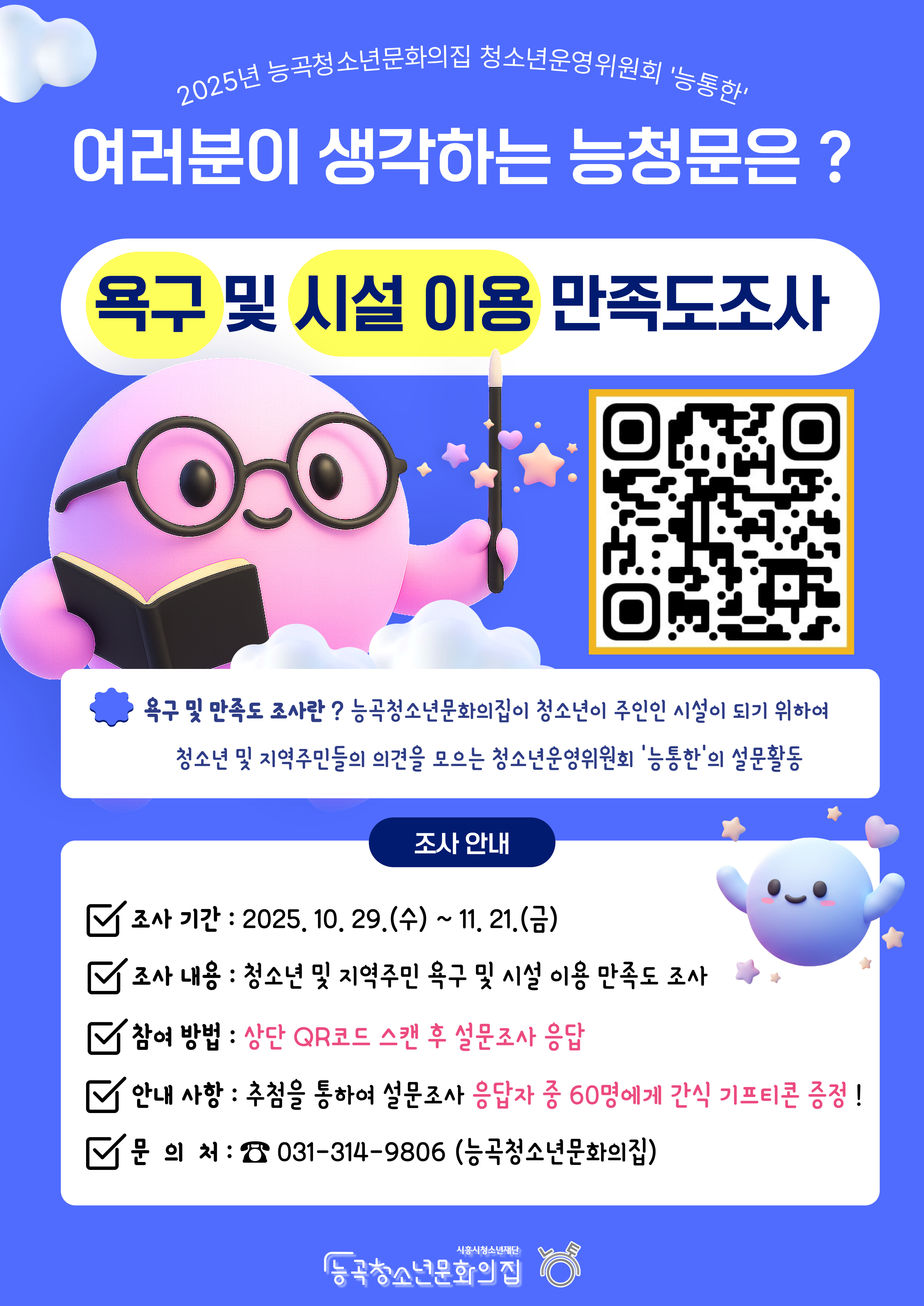 능통한은 능곡청소년문화의집이 더 좋은 시설이 되기위하여 청소년 및 지역주민들의 의견을 모으고 있습니다 ! ✨