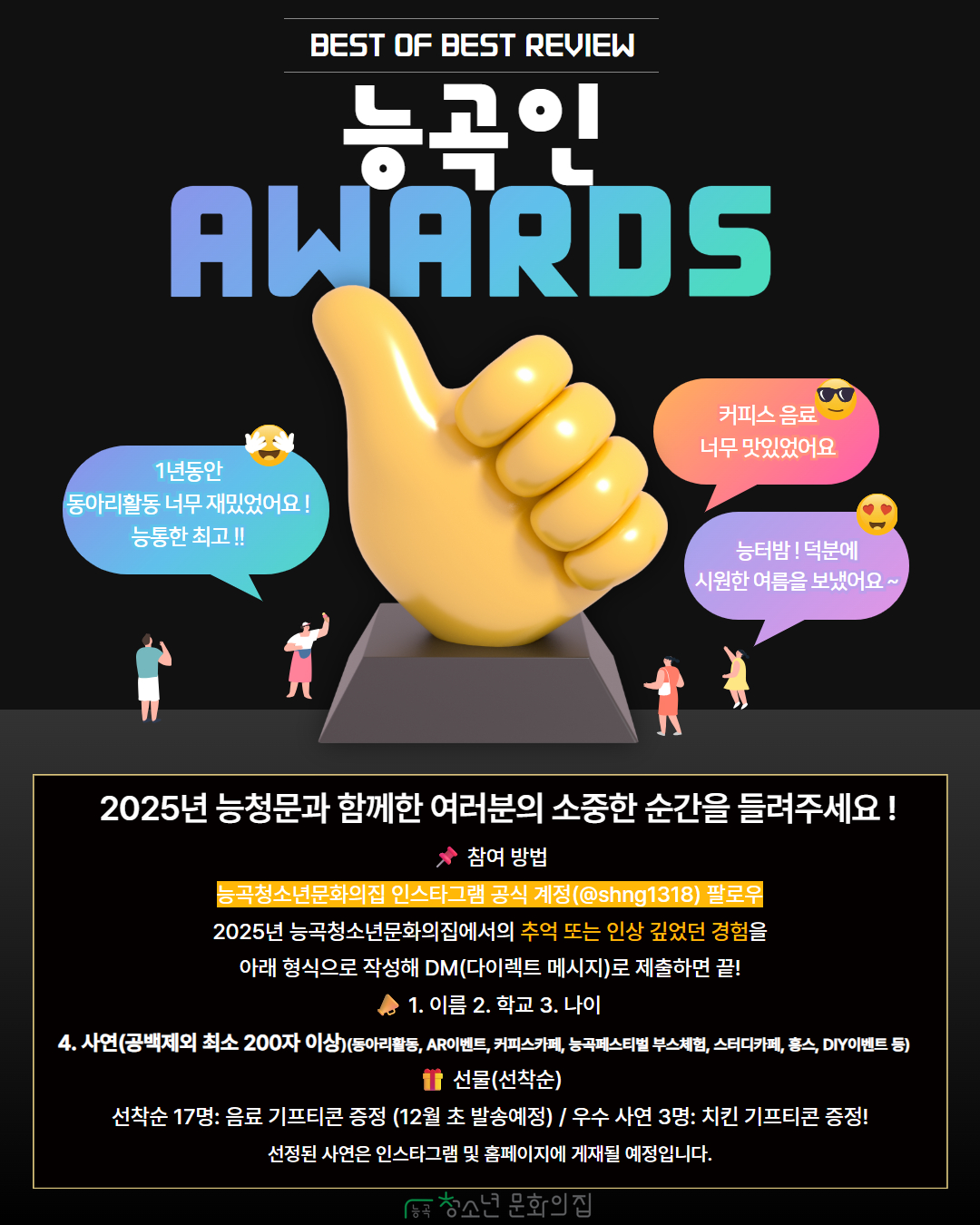 ➡️ 우수 사연 3명 → 치킨 기프티콘 추가 제공!