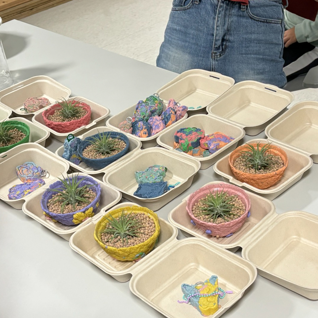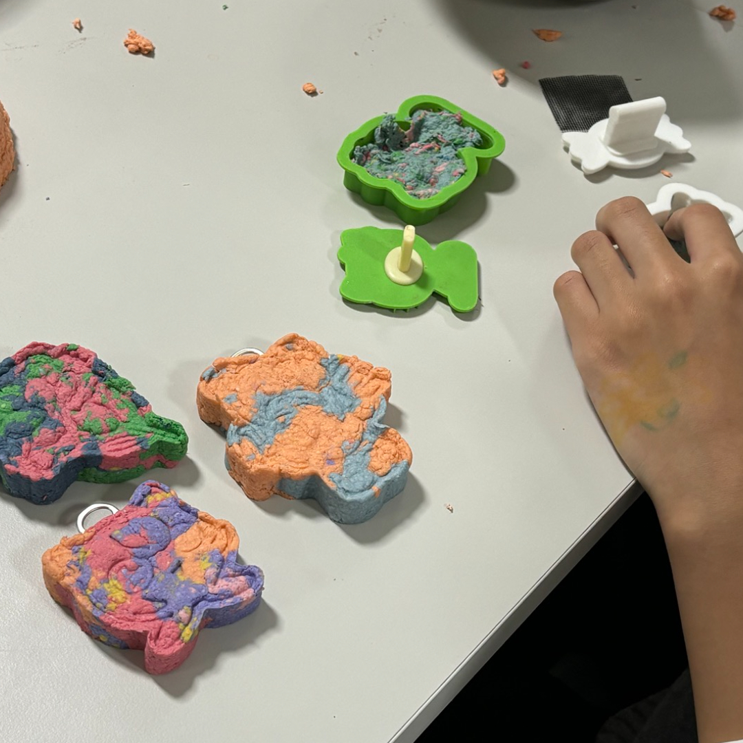 2회기는 폐 종이죽을 활용하여 화분과 키링을 만들어보는 시간을 가졌습니다 ! 평소 자주 사용하는 종이라는 재료를 활용해서 공예를 해보는 경험이 청소년들에게 꽤나 흥미롭게 다가온 듯 하였는데요!