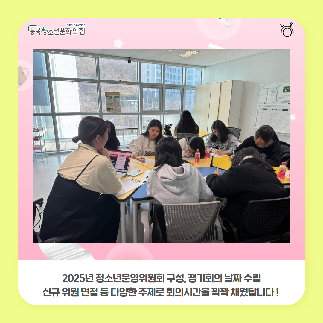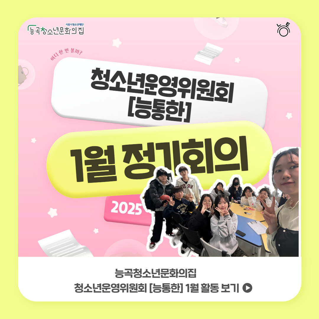 사이트 전체메뉴 시설소개 인사말 기관연혁 비전 및 미션 함께하는 사람들 시설이용안내 영상정보처리기기 오시는 길 청소년참여자치활동 청소년 참여자치기구 연합지원사업 청소년운영위원회 ‘능통한’ 청소년동아리연합회 ‘아로하’ 후기청소년서포터즈 ‘로망’ 기관특성화동아리 청소년활동프로그램 후기 청소년 체험형 인턴십 프로그램 SDGs청소년사회참여프로젝트 능곡미디어스튜디오 능곡베이킹스튜디오 사회참여환경프로그램 청소년AR실내운동회·플랫폼 청소년바리스타활동 청소년자율이용공간 청소년주도공간기획운영 청소년참여역량강화활동 지역사회연계협력활동 신청&대관 통합예약접수 바로가기 흥스(대관시설) 바로가기 알림마당 공지사항 채용정보 행사안내 활동소식 보도자료 자유게시판