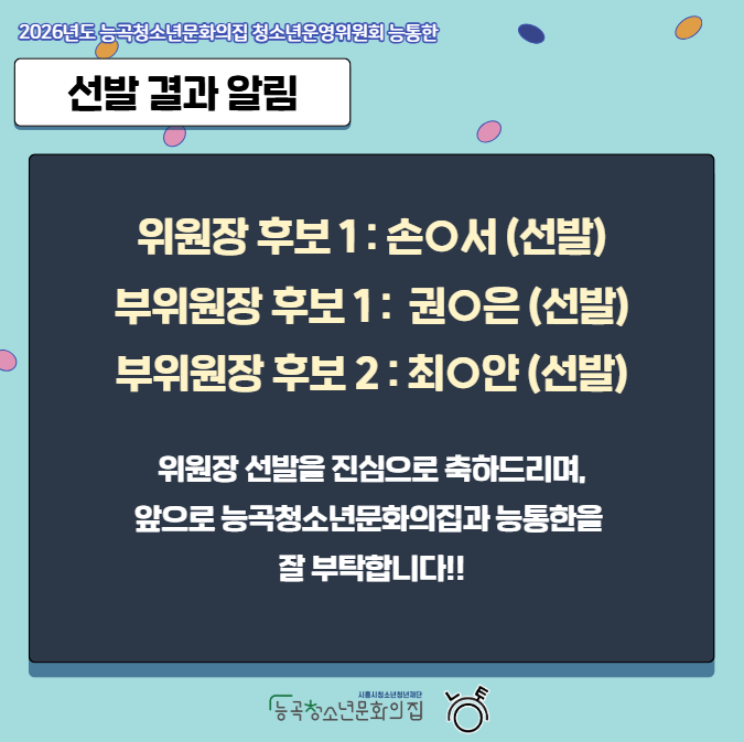 [2026년 청소년운영위원회 능통한 위원장 선거 선발 결과 알림]
