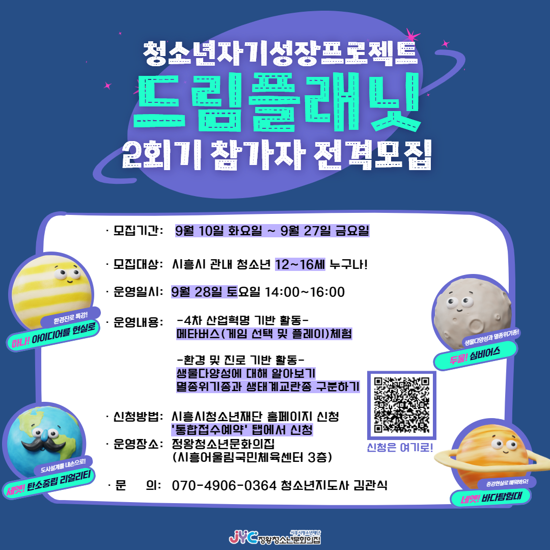 2024년 청소년자기성장프로젝트 드림플래닛 2회기 프로그램 신청