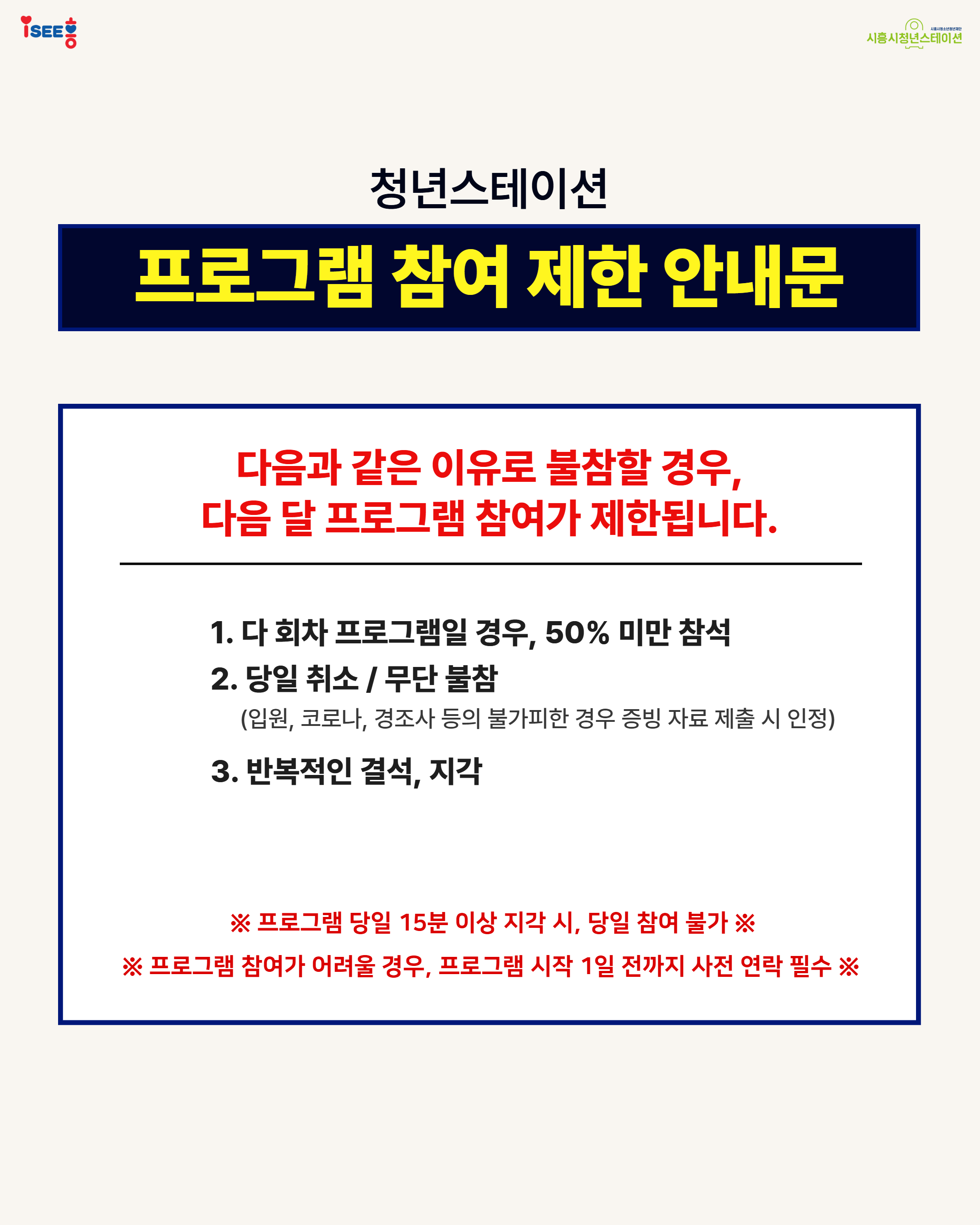 🙋문의사항 : 070-8894-6839 / 070-7710-3816 (청년스테이션 운영사무실)✨