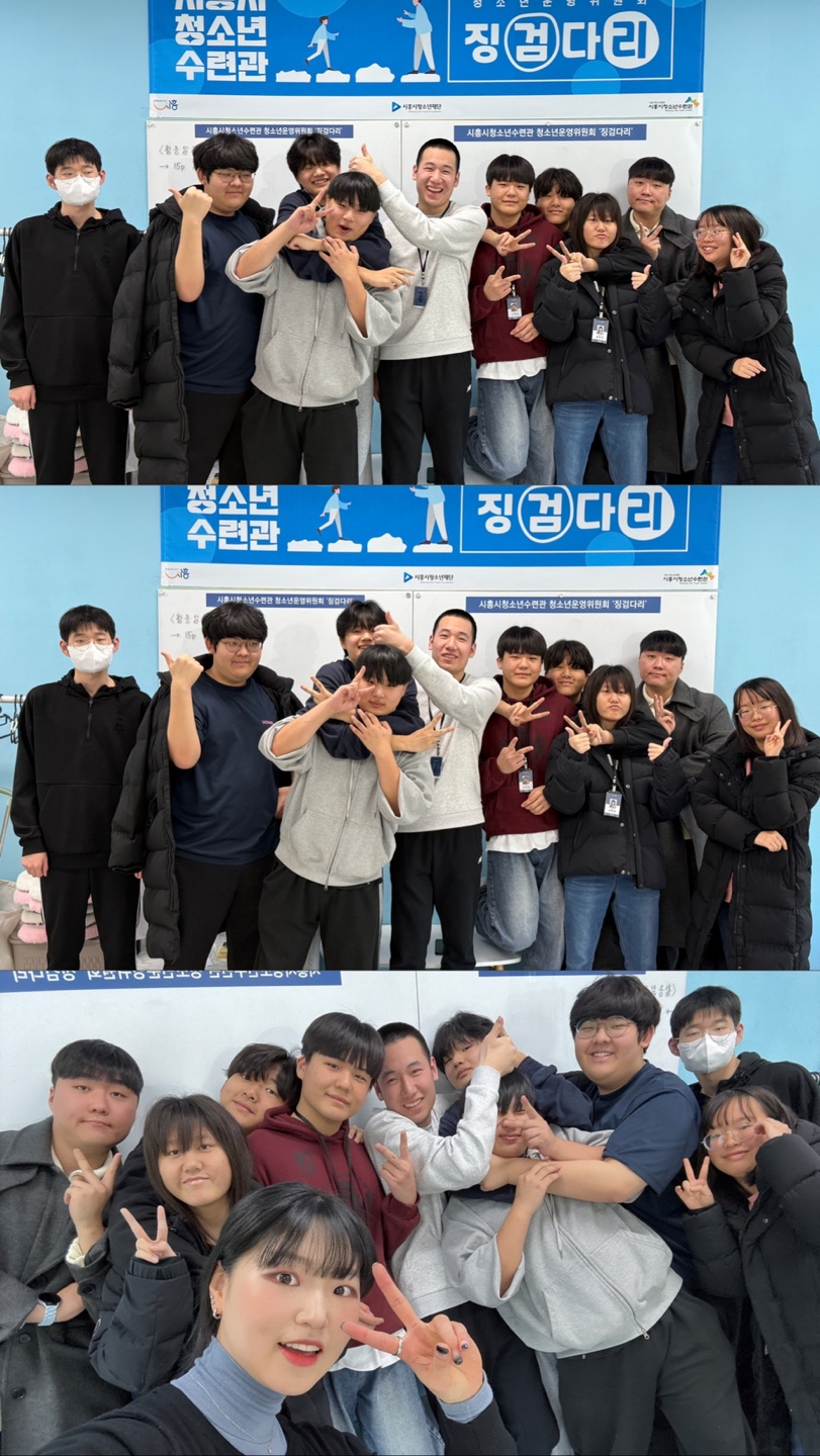 사이트 전체메뉴 시설소개 인사말 기관연혁 비전 및 미션 함께하는 사람들 시설이용안내 영상정보처리기기 오시는길 청소년참여자치활동 청소년운영위원회 ‘징검다리’ 기관동아리연합회 ‘MOIM’ 후기청소년서포터즈 ‘청춘동행’ 청소년활동프로그램 시흥시으뜸성장챌린지 시흥시청소년동아리지원사업 시흥시청소년동아리축제 창업프로그램 시흥시청소년어울림마당 썸머에피소드 문화체육프로그램 수영 헬스 평생교육(문화교육, 생활체육) 신청&대관 정규강좌수강신청 통합접수예약 바로가기 흥스(대관시설) 바로가기 알림마당 공지사항 채용정보 행사안내 활동소식 보도자료 자유게시판