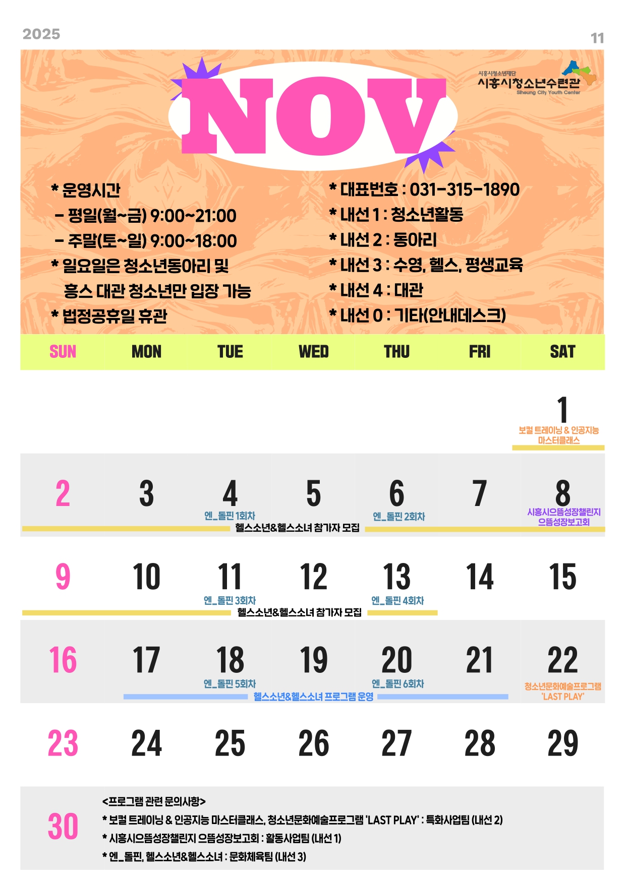 2025년 하반기 시흥시청소년활동진흥센터 단시간근로자 채용 공고2025.10.29