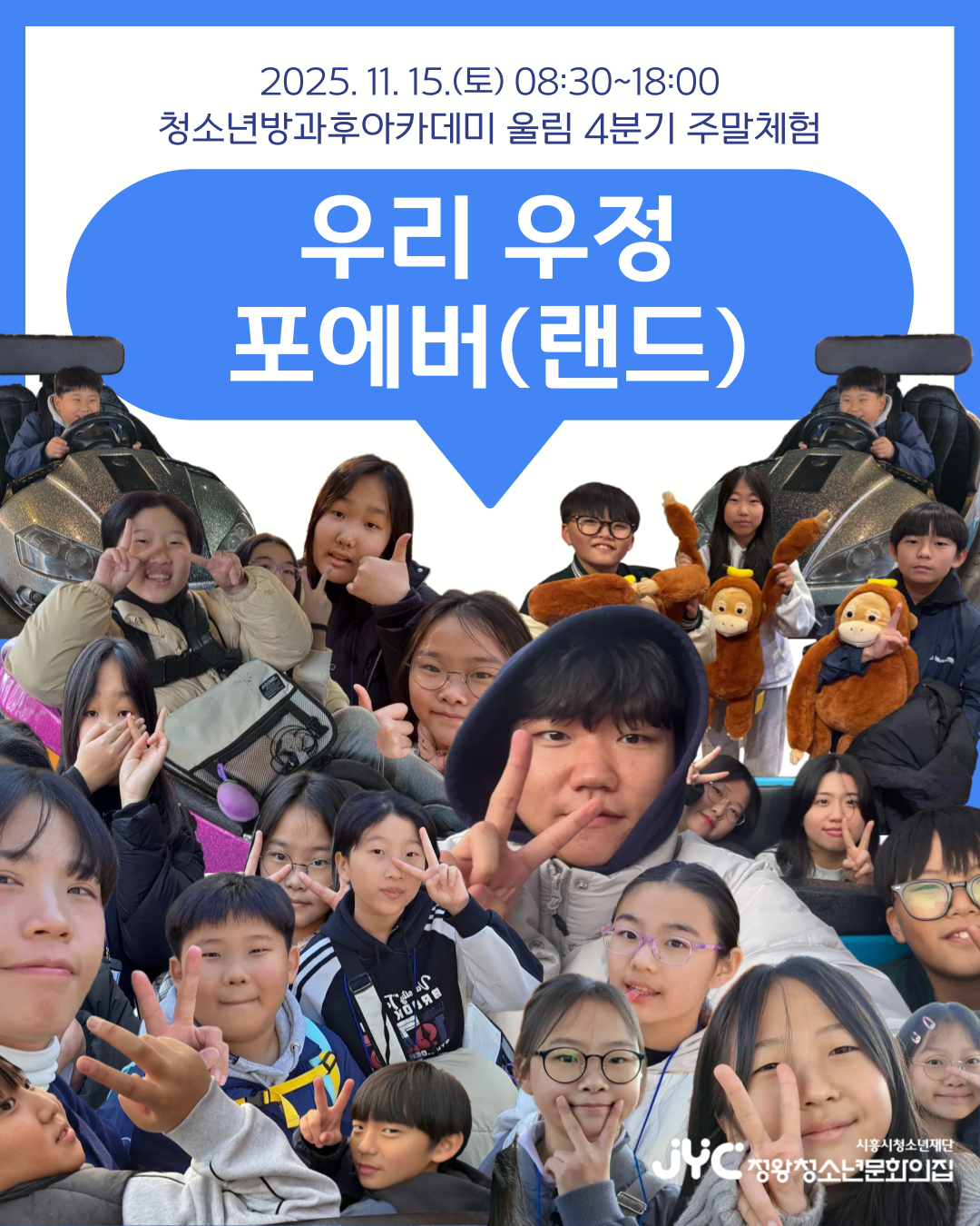 사이트 전체메뉴 시설소개 인사말 기관연혁 비전 및 미션 함께하는 사람들 시설이용안내 영상정보처리기기 오시는 길 청소년참여자치활동 청소년운영위원회 ‘함께’ 기관동아리연합회 '망고' 시흥시청소년환경감시단 연합네트워크 시화호청소년환경감시단 'B.S.A.S.' 청소년활동프로그램 청소년환경페스티벌 시화호청소년지속가능포럼 청소년환경국제교류 청소년기후행동프로젝트 이주배경청소년활동지원사업 문화다양성존중프로그램 청소년청년공간이용활성화 청소년방과후아카데미 청소년방과후아카데미 ‘울림’ 울림 공지사항 신청&대관 통합접수예약 바로가기 흥스(대관시설) 바로가기 알림마당 공지사항 채용정보 행사안내 활동소식 보도자료 자유게시판