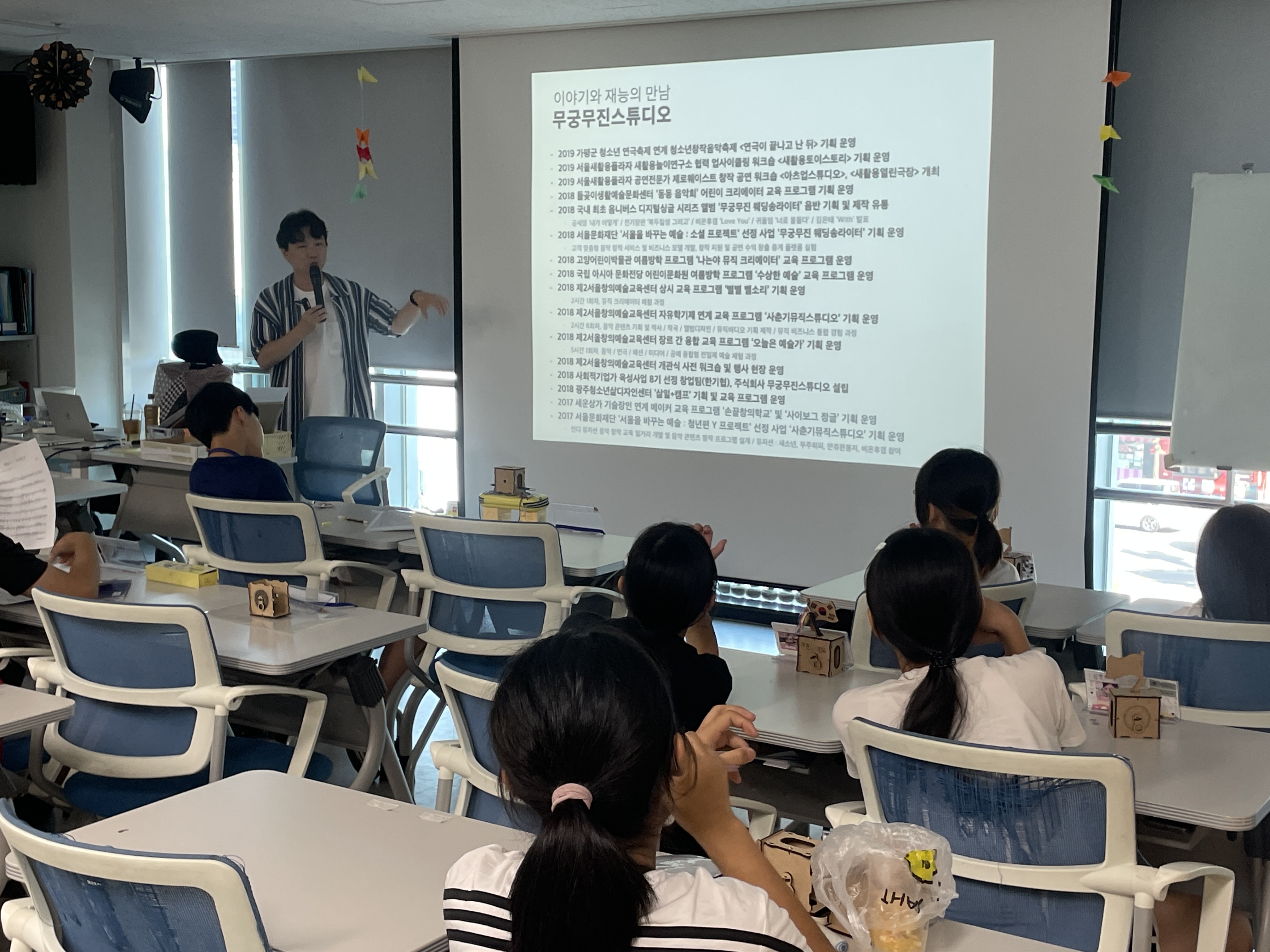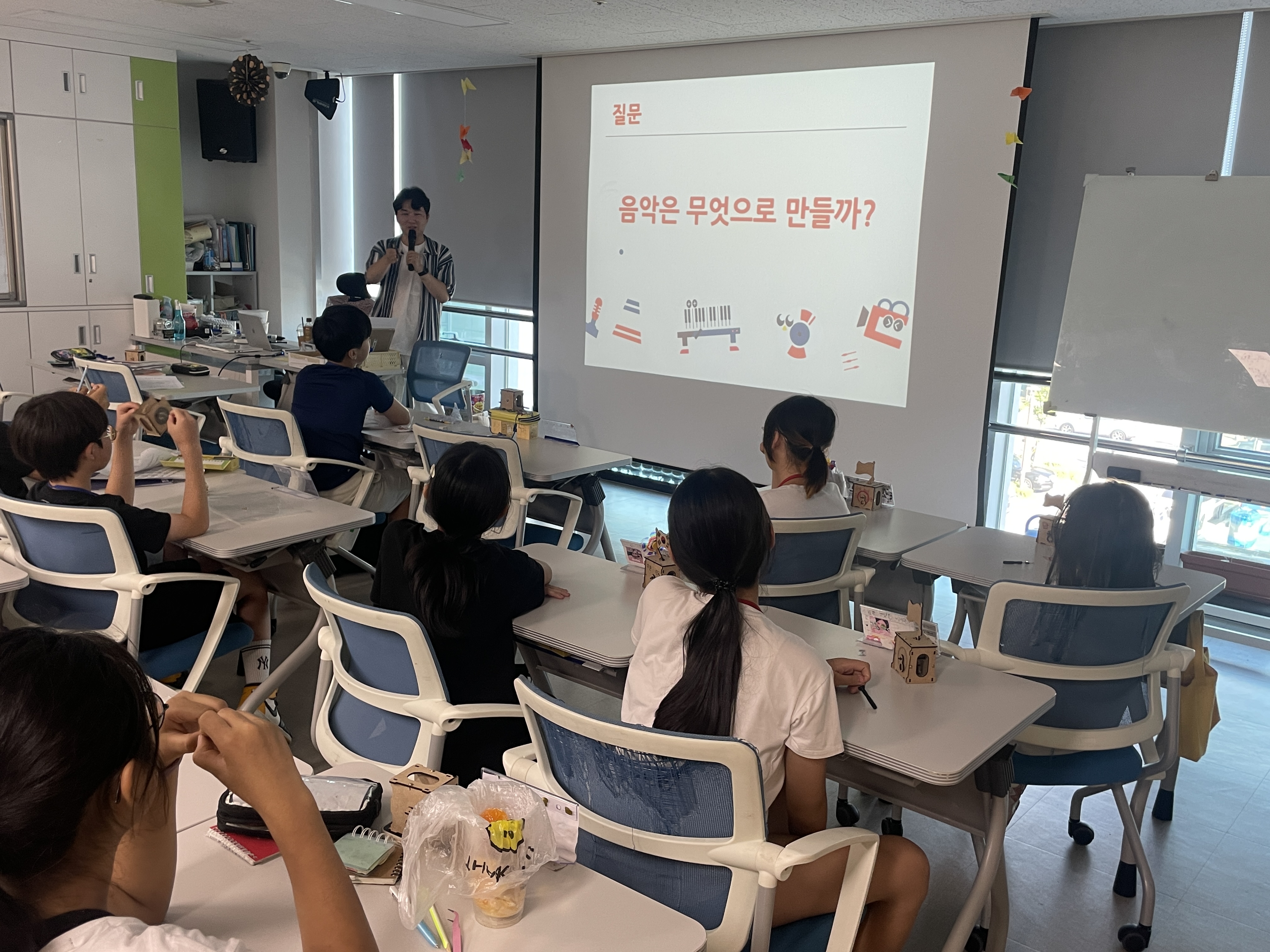 마지막으로 팀별로 스튜디오를 소개하고, 어떤 의미를 담아 곡을 제작하게 되었는지 공유하고, 들어보는 시간을 마지막으로 활동을 마무리하였습니다!♬