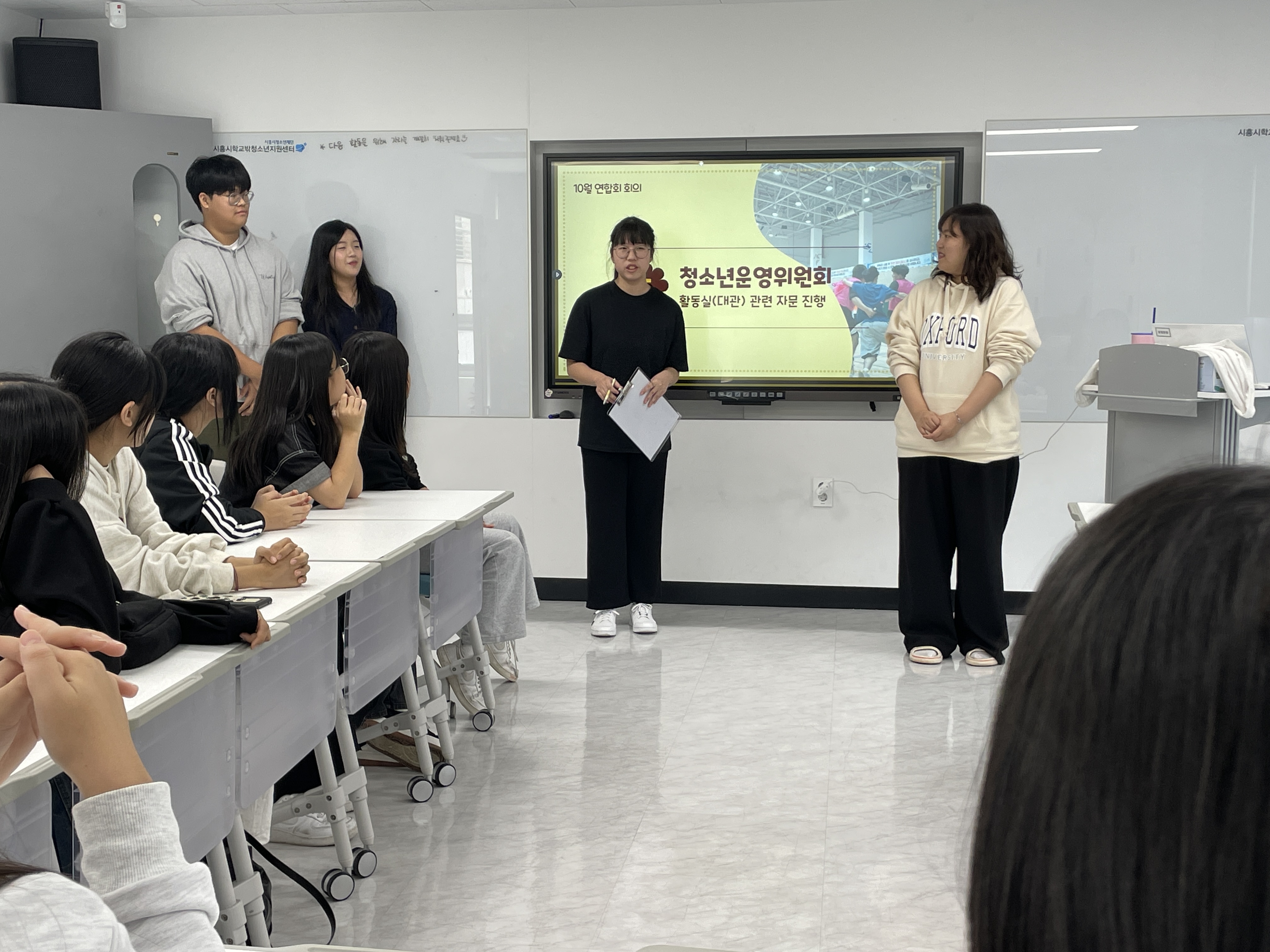 ★제일 먼저 청소년운영위원회 위원장, 기획분과장, 위원과 함께 기관 내 활동실 모니터링 결과를 함께 공유하고, 잘 이루어지지 않고 있는 정리 부분에 대한 의견을 들어보는 시간을 가졌습니다!