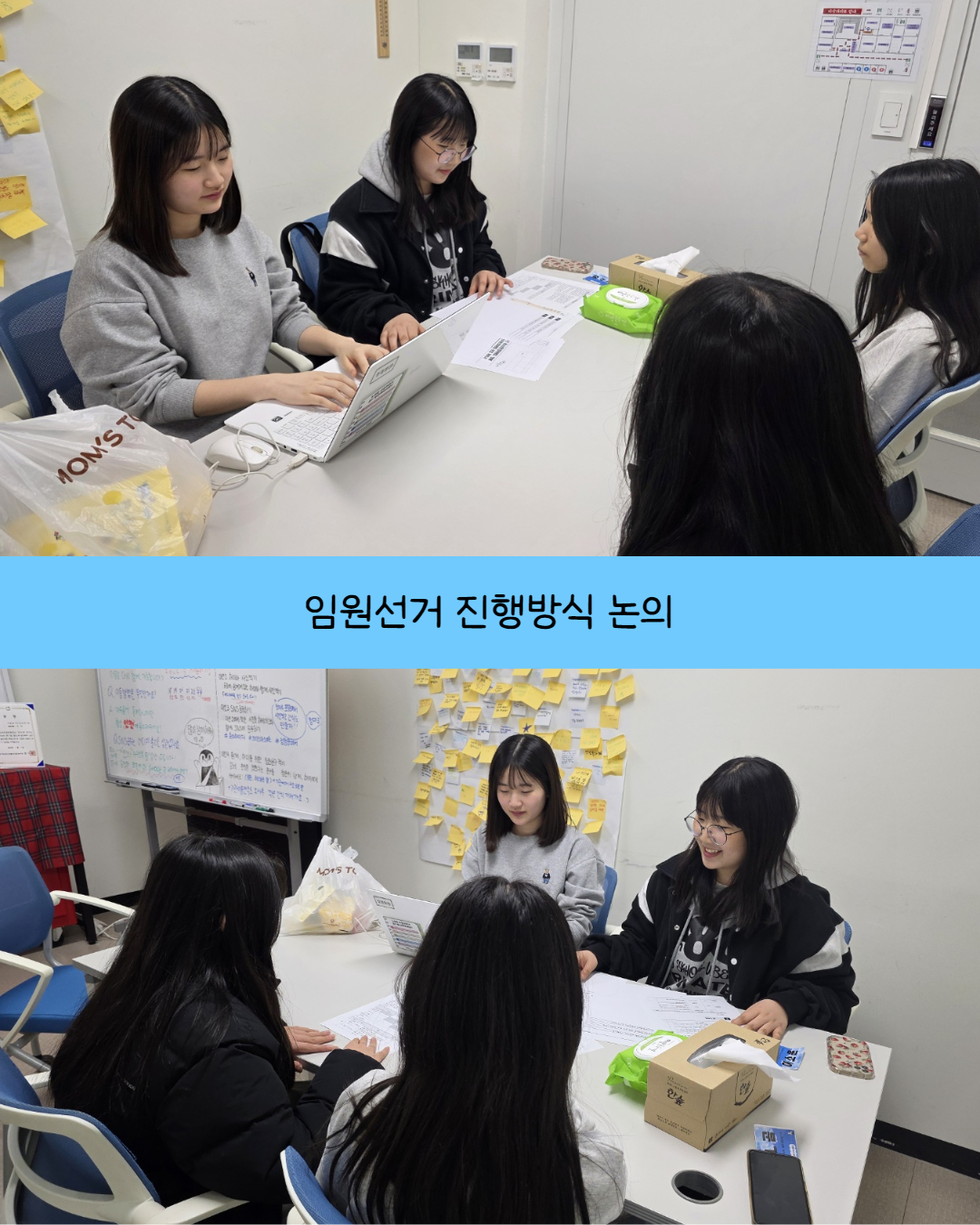 오리엔테이션이 끝난 후, 선거관리위원회 위원들이 모여 선거 운영 방식을 논의하는 시간을 가졌어요.