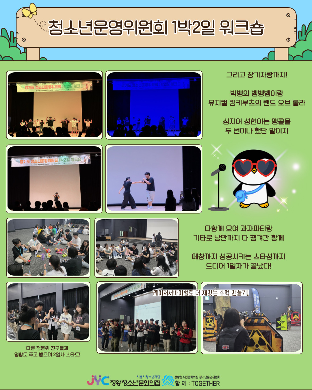 저녁에는 레크리에이션과 장기자랑으로 웃음이 끊이지 않았답니다🎉