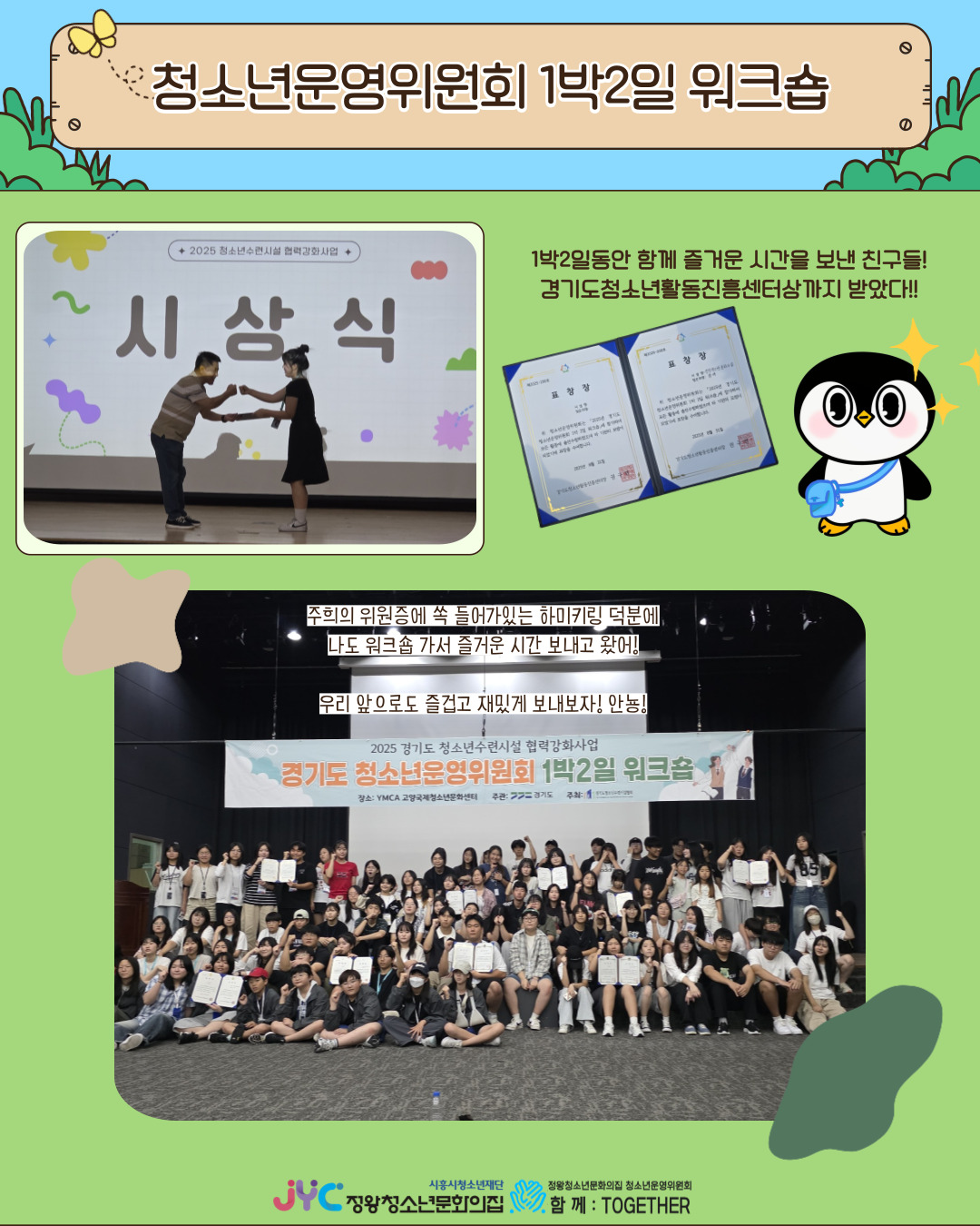 즐거운 추억과 소중한 만남을 바탕으로 항상 열심히 하는 ‘함께’가 되겠습니다! 💙