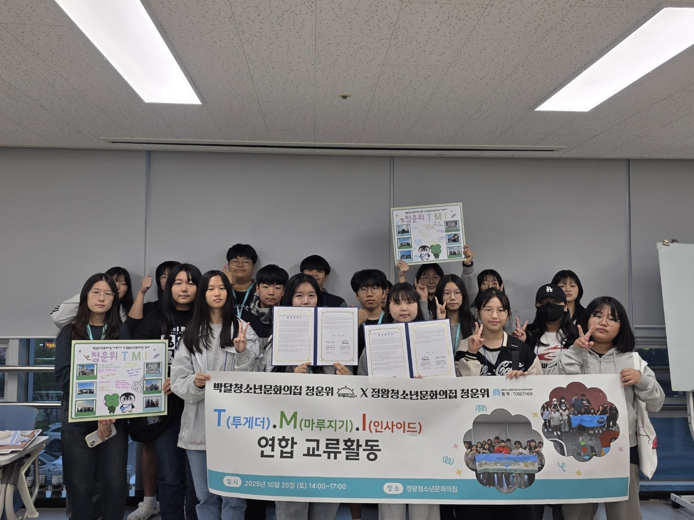 정왕청소년문화의집 ‘함께’ 이주희 위원장과 박달청소년문화의집 ‘마루지기’ 이나경 위원장은 “이번 교류를 통해 새로운 아이디어와 관점을 배우는 뜻깊은 시간이었다”라며 “앞으로도 청소년들이 주도적으로 만들어 가는 교류의 장이 더 많아지길 바란다”라고 전했다.
