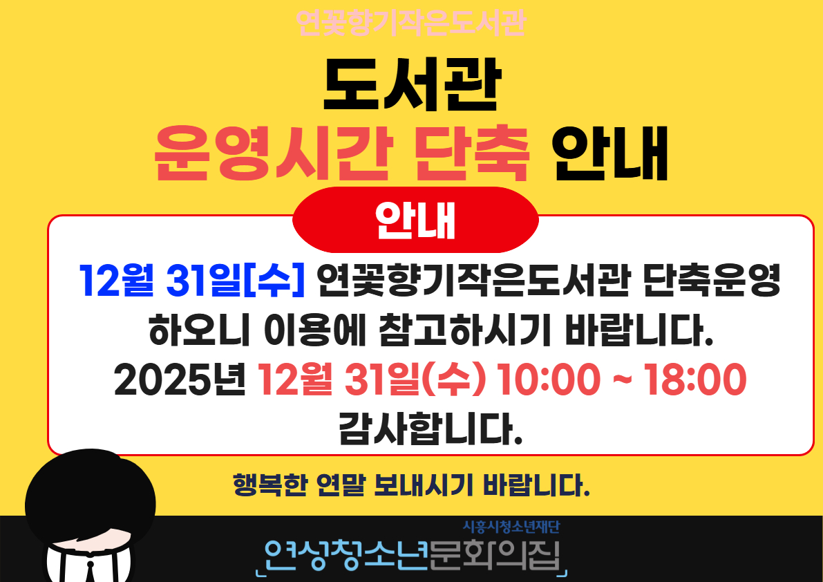 12월 31일 연꽃향기작은도서관 단축운영 안내(10시 ~18시 운영)
