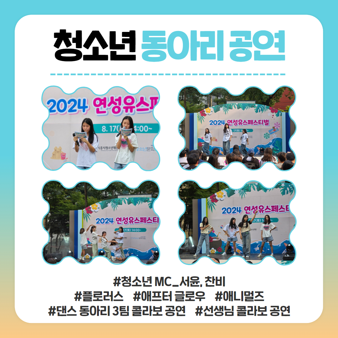 지난주 토요일(8/17), 연성청소년문화의집 및 하상공원 일대에서 연성유스페스티벌이 진행되었습니다!